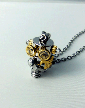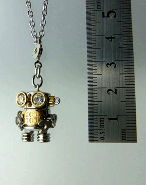 お腹を抱えたような手と短い足が特徴。従来品をベースに、バランスを整えただけではなく、パーツ数を増やし、より精巧な作りになりました。目のスワロスキーもフラットバック型からダイヤカットに変更、パーツのメッキコーティングの質も向上しています。